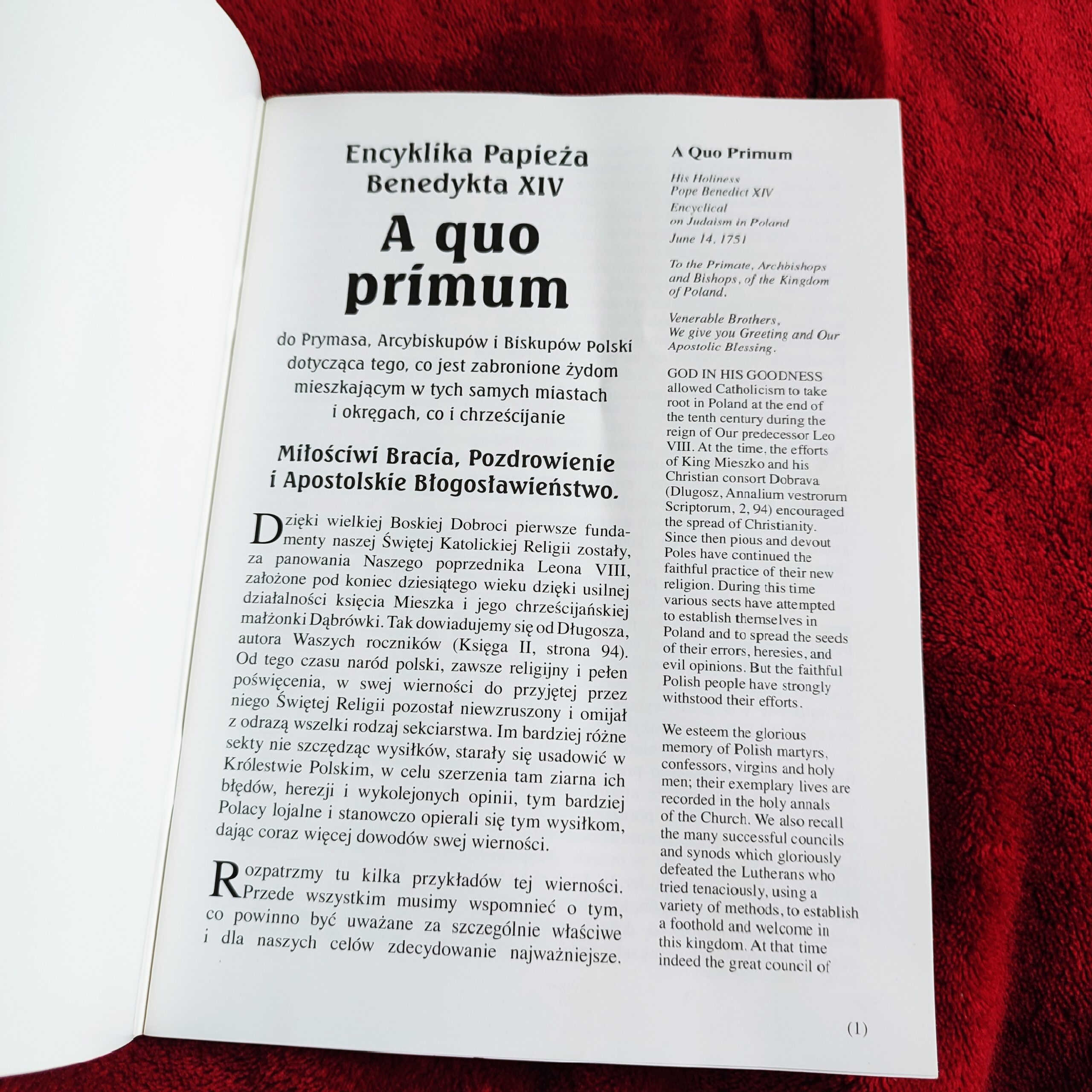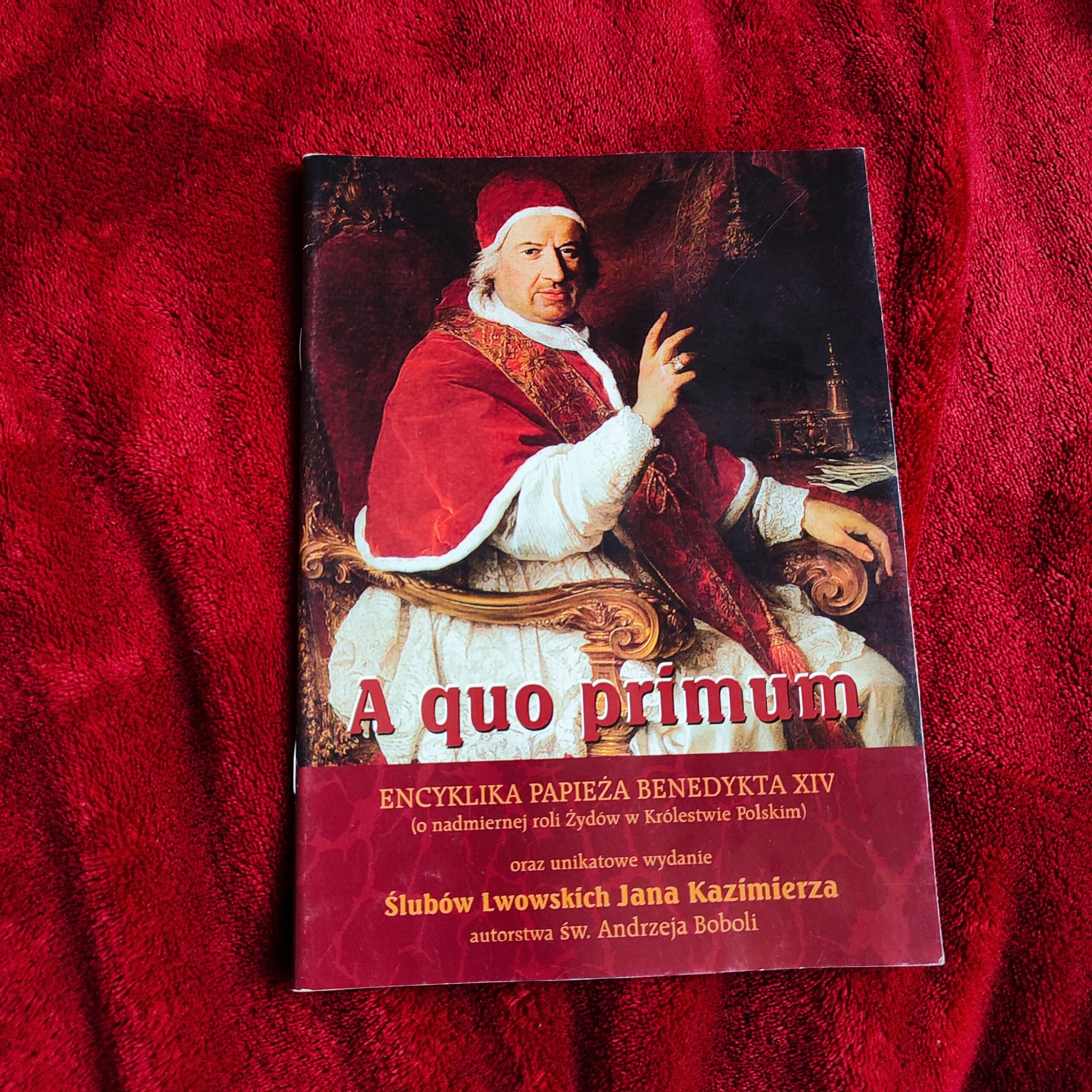 „A quo primum”. Encyklika Papieża Benedykta XIV o nadmiernej roli Żydów w Królestwie Polskim oraz unikatowe wydanie Ślubów Lwowskich Jana Kazimierza (…) [bdw.]