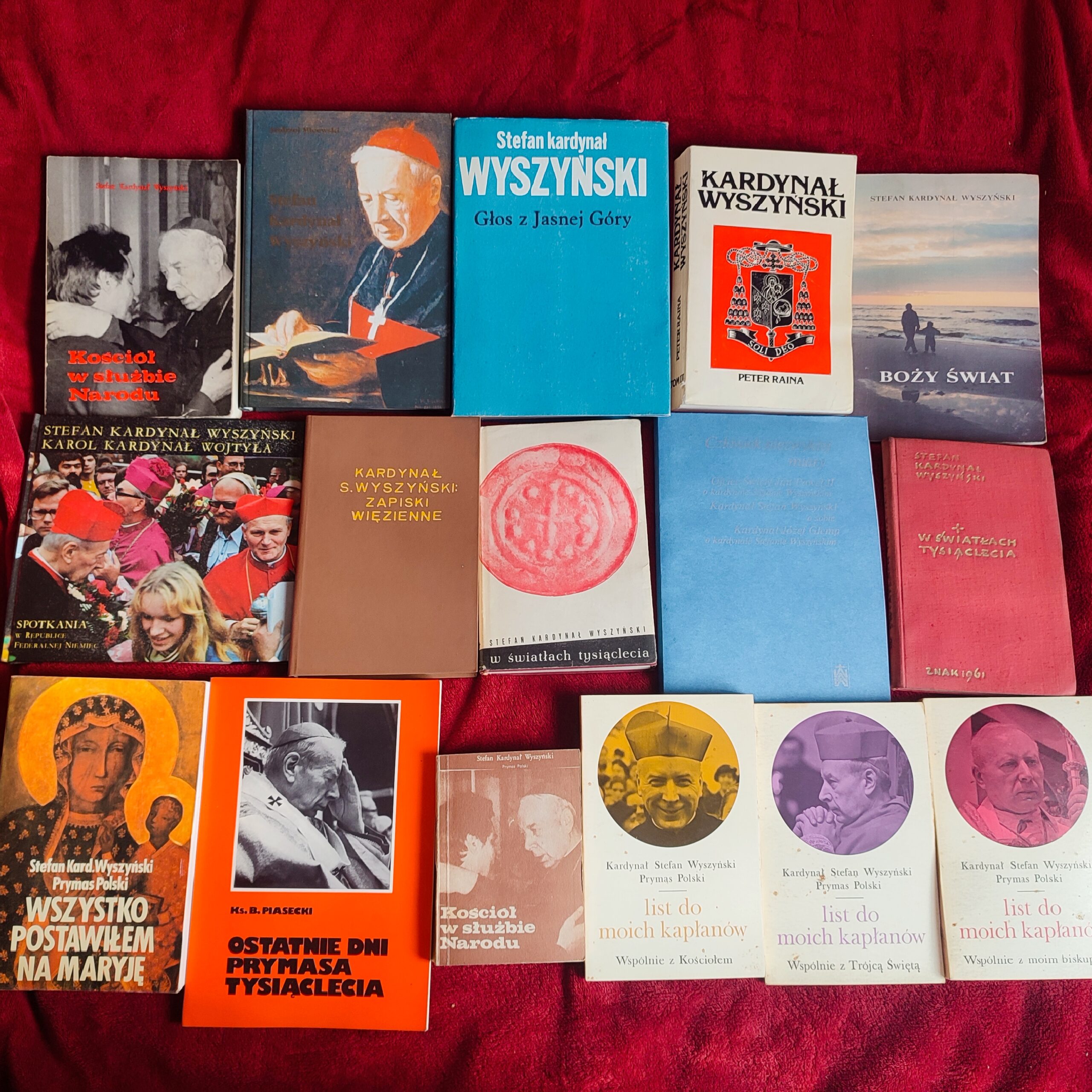 Zestaw 16 książek autorstwa Prymasa Polski lub jemu poświęconych.