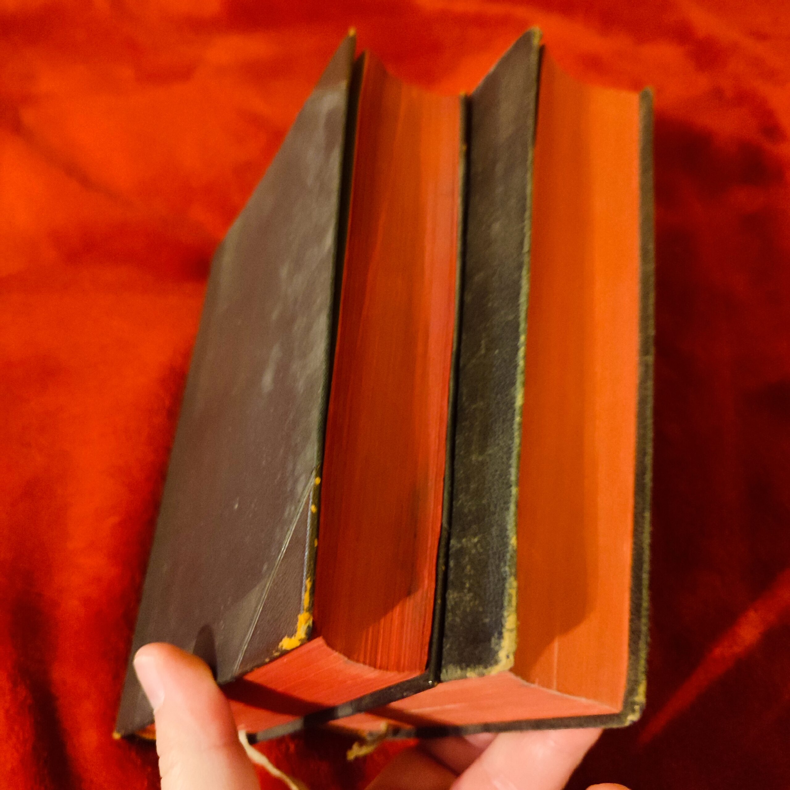 Brzegi stron barwione na czerwono.